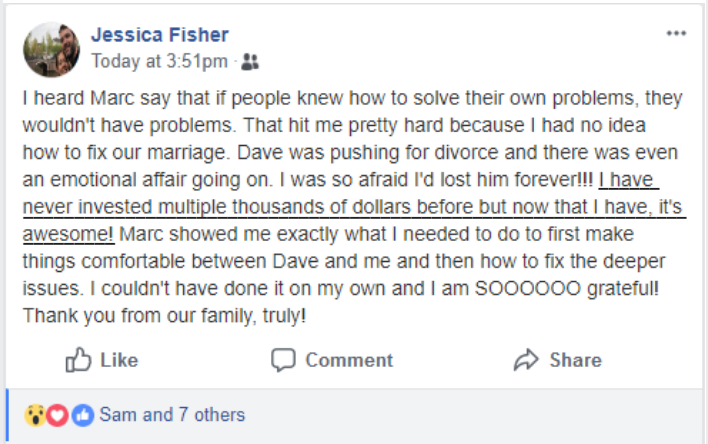 And you'll get to connect with other marriage restorers. Through group strategy sessions, you'll learn from the advice Marc & Heather give others in the tribe.