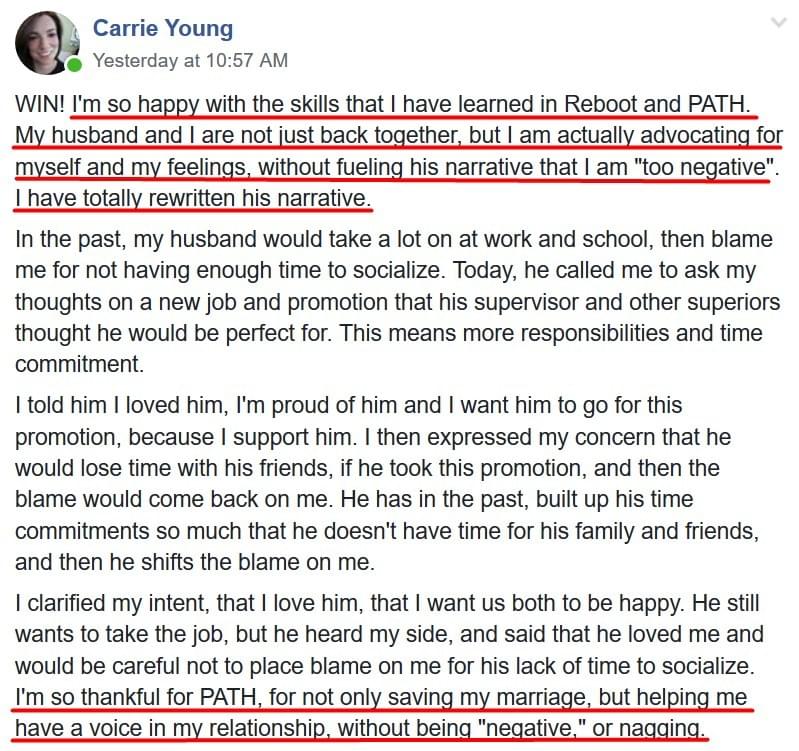 Because I did what Marc and Heather taught and for the first time in literally months, I got positive results with my wife.